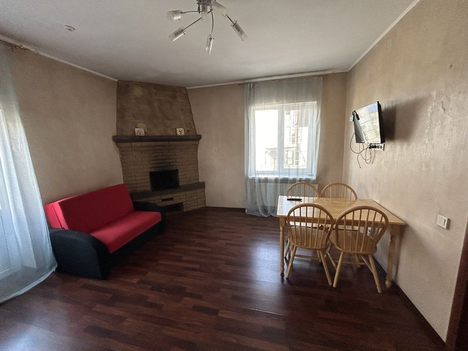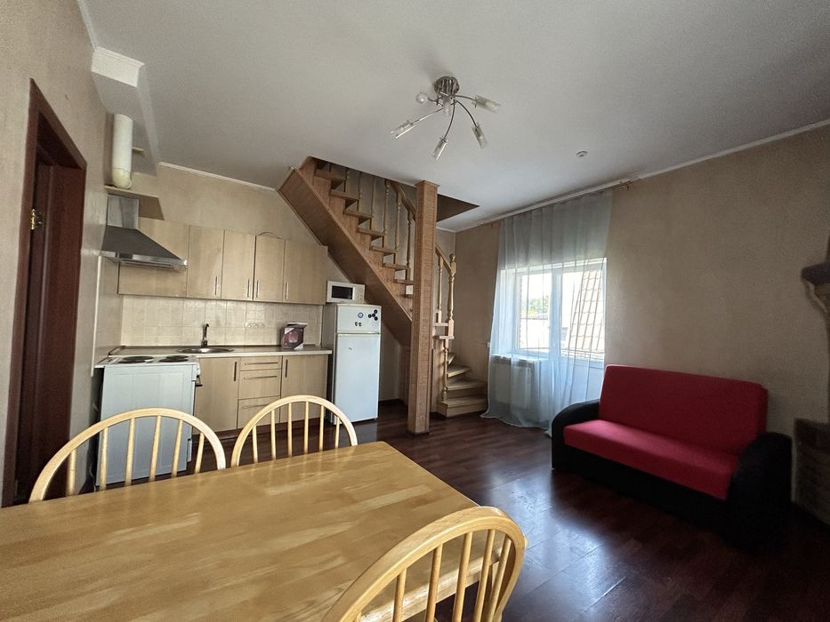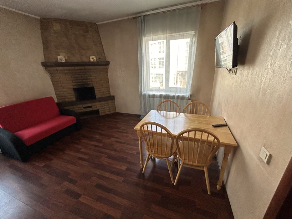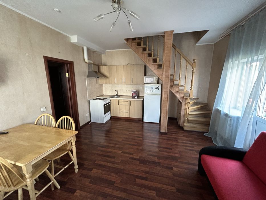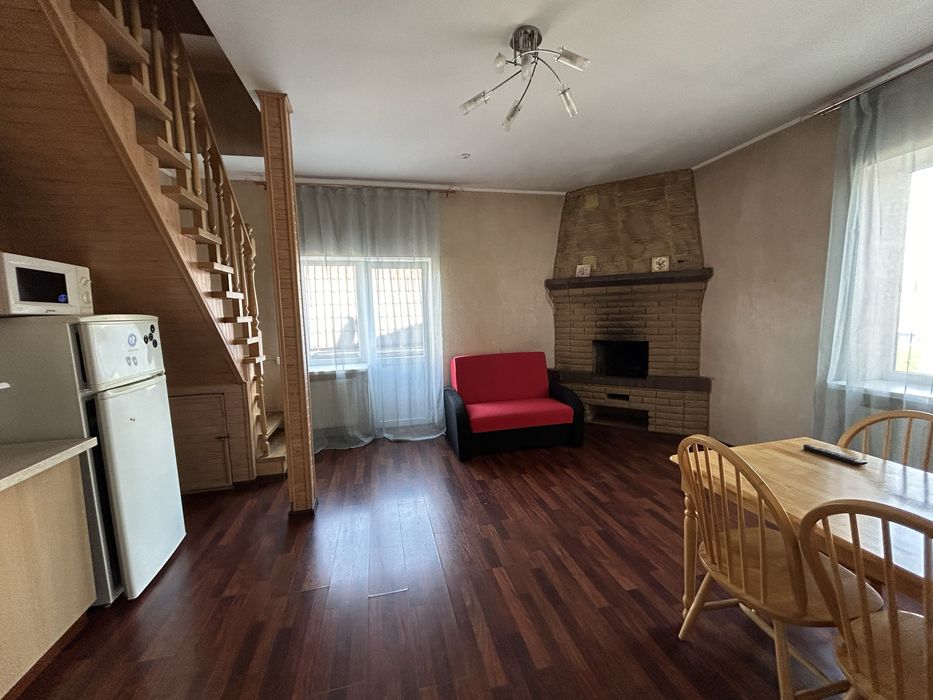 Квартира знаходиться на 2 поверсі приватного будинку та складається з 2 рівнів: На 1 рівні - кухня-студія 26 метрів з каміном та сантехнічний вузол 2 кв.метра