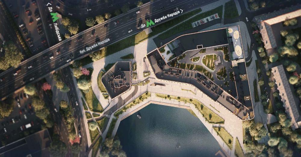 На території планується дитячий майданчик, вихід на озеро, підземна парковка (в першому та другому будинках), гостьовий паркінг.