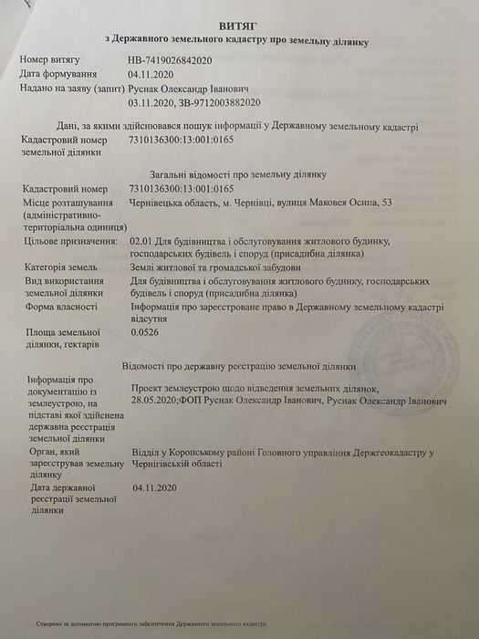 | Земельна ділянка: |