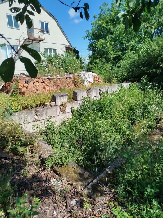 На ділянці є фундамент 12*12 (потребує перекладання), кірпіч, каміння. Посаджений молодий сад, город давно не оброблявся.