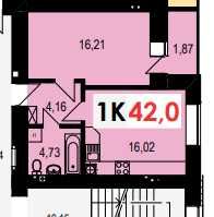 Загальна площа 42 м2. Простора кухня - 16 м2. Поверх 2/10