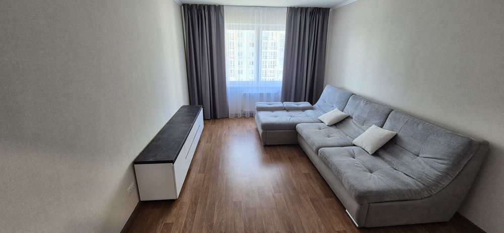 Простора 1-кімнатна квартира у ЖК "Патріотика" в Дарницькому районі. На 11 поверсі 25-поверхового будинку, площею 43 м.кв., за адресою вулиця. Софії Русової 7а. Новобудова, сучасний новий ремонт, перша сдача в оренду, ніхто не мешкав! Вся необхідна техніка і меблі. Є лічильники на воду та тепло. Будинок з генератором! Поряд з будинком вся необхідна інфраструктура - дитячий та спортивный майданчик, супермаркети, кафе, ресторани, 2 озера і пляж, громадський транспорт. До метро Позняки та Осокорки 15 хв пішки