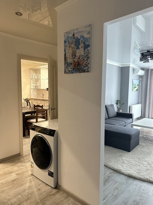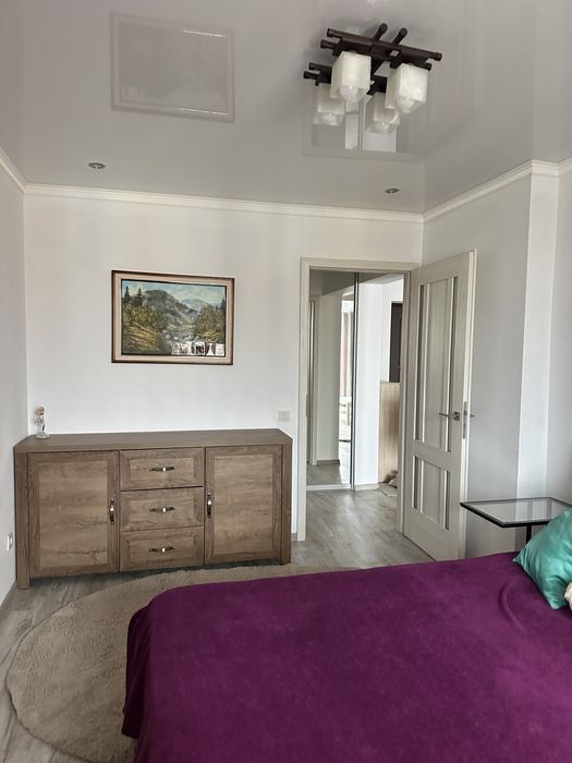 Здаю в довготривалу оренду свою світлу чисту уютну двокімнатну квартиру. Дві окремих кімнати: вітальня, спальня, окремо кухня, роздільна ванна і туалет, гардеробна і два окремих балкони з панорамними вікнами. Чиста простора з широкими коридорами. Квартира після ремонту, після ремонту ще ніхто не жив. Всі меблі, штори, килими після хімчистки. Меблі також залишаю: розкладний двоспальний диван, ліжко з ортопедичним матрасом, куток на кухню, стільці. Тут є все необхідне для комфортного проживання: кондиціонер, індивідуальне опалення з терморегулятором, телевізор, духовка, плита, холодильник, посудомийка, пральна машина, сушильна машина, праска і дошка для прасування.