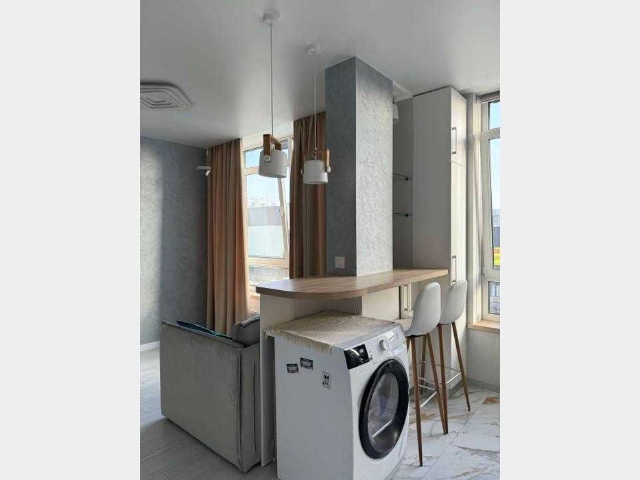 Голосіївський; Оренда 1-к квартири на бул.Тадея Рильського 3; Нова квартира в ЖК Республіка 36м2. Дизайнерський ремонт. Будинок - Бетонно монолітний, в квартирі 1 кімната. Вид з вікон на проїжджу частину, на місто. Квартира перепланована, планування кімнат Суміжно-роздільна. Немає газу, кухонна плита електрична. Гаряча вода - електричний бойлер. Опалення центральне. Суміщений санвузол, Туалет/душ. Сантехніка нова. Є підігрів підлоги. Немає балкона. Лоджії немає.Стеля натяжна. Вікна металопластикові, нові. Міжкімнатні двері типові, нові. В квартирі є Шафа, Холодильник, Ліжко, Пральна машина, Кондиціонер, Лічильники, Душова кабіна, Посудомийна машина. Будинок побудований в 2021 році. Загальний стан квартири - Дизайнерський ремонт. Охорона. Поруч є школа, зупинки, розважальні заклади, супермаркет, парк.