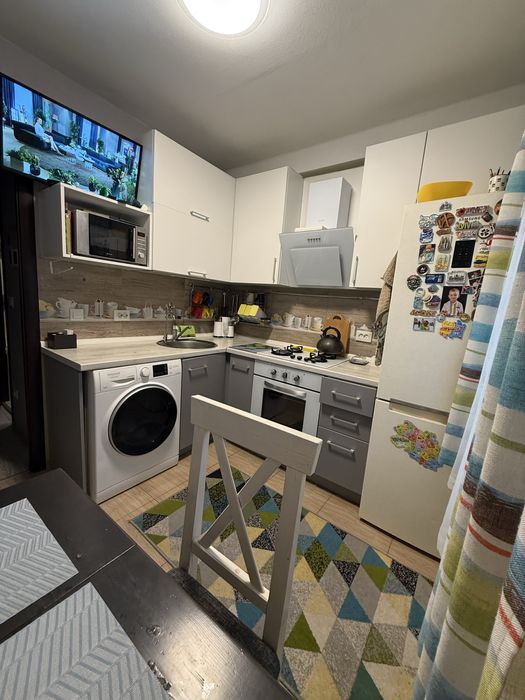 Святошинський; Продаж квартири з меблями та технікою (метро Нивки, Святошино); Продаю свою квартиру. Право власності зареєстроване 2021 року. Новий ремонт, енергозберігаючі вікна, утеплений балкон, оновлена електрика та труби водопостачання, свіжа побутова техніка та виготовлені на замовлення меблі в кожній кімнаті. На всі додаткові питання відповім.