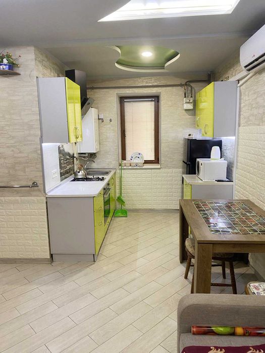 Квартира оснащена всем необходимым для комфортного проживания. Свежий ремонт, 2-х контурный котел газовый, кондиционер, стиральная машина, TV, интернет, встроенная кухня.