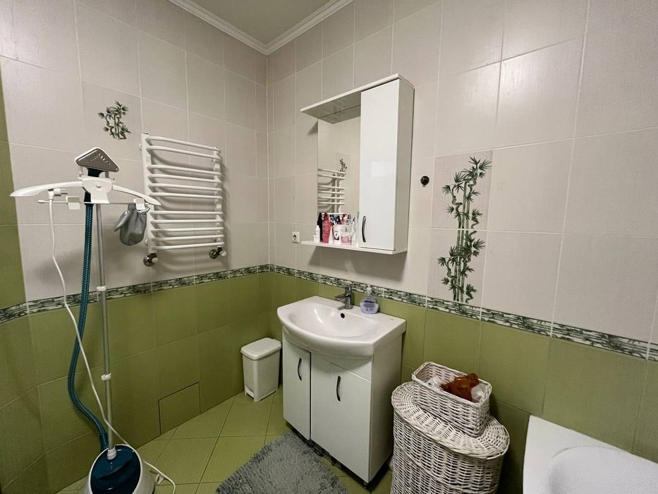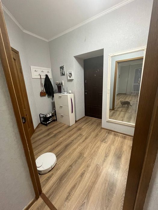 Квартира в готовності до проживання, дуже світла та затишна, є тепла підлога в ванній кімнаті, велика гардеробна в передпокої, в квартирі залишаються меблі та побутова техніка.