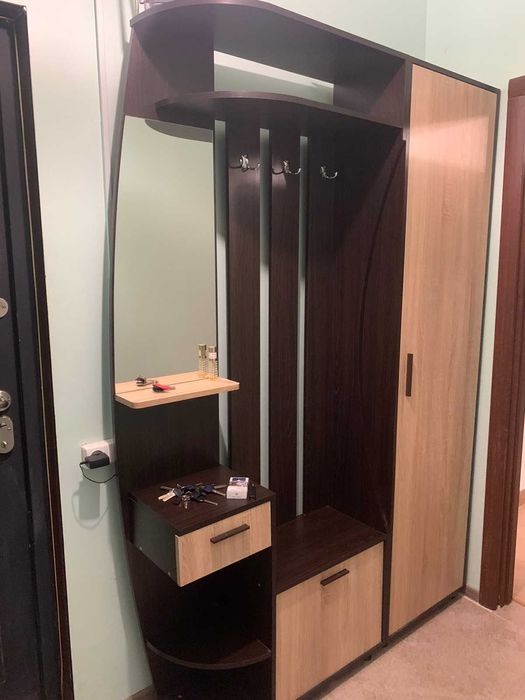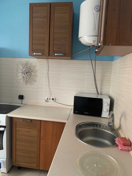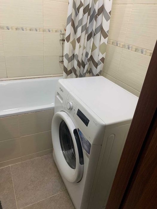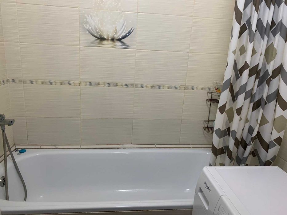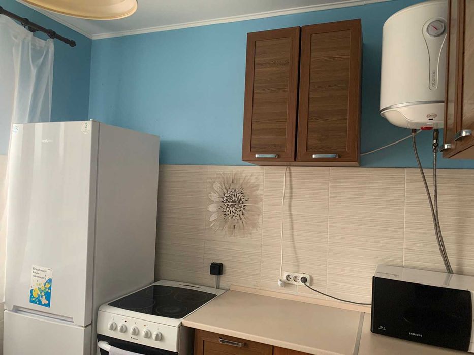 Встроенная кухня, диван,кровать, шкаф, письменный стол, стиральная маш.автомат, холодильник, бойлер, микроволновка, плита електрическая. Сан.узел раздельный. Большой балкон на 2-е комнаты. Тамбур на 2-е квартиры.