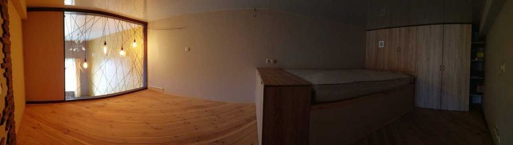 Установлен кондиционер. Высокие потолки и лофт-зона создают дополнительное пространство, а мебель, выполненная по индивидуальным замерам, обеспечивает максимально удобные места для хранения.