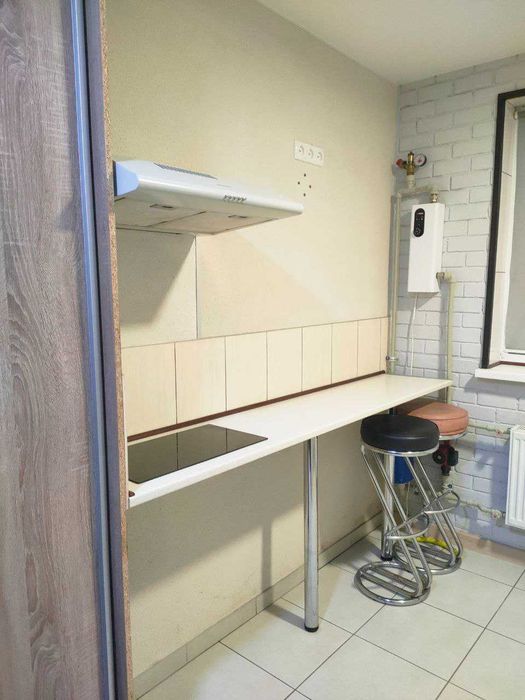 Кухонна зона з індукційною плитою та витяжкою.