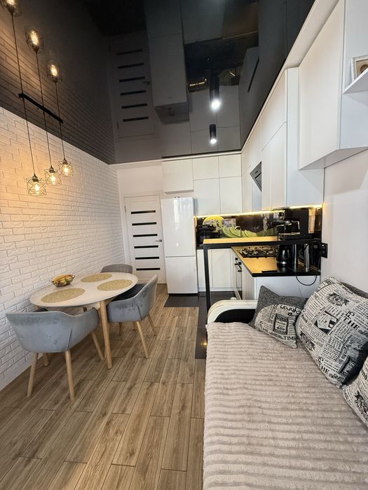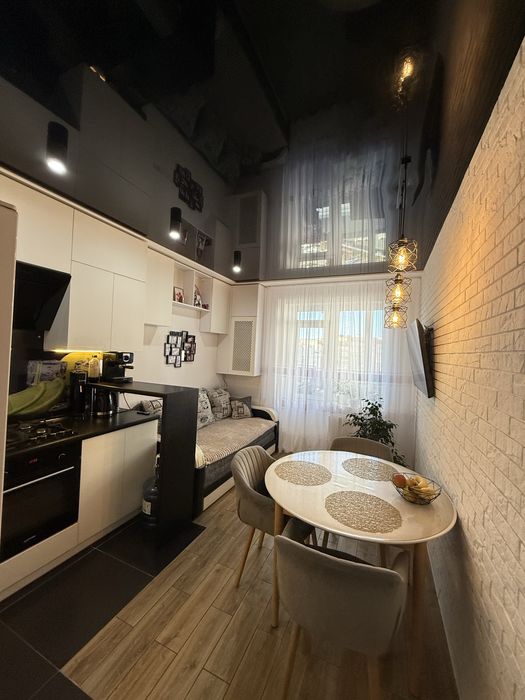 Велика кімната,гардероб ,14 м.кВ кухня з розкладним великим спальним місцем та Тв зоною,великий балкон з панорамним вікном ,6 поверх із 10 всередині дуже тепла ,зручна інфраструктура поряд дуже багато магазинів ,аптек тощо …