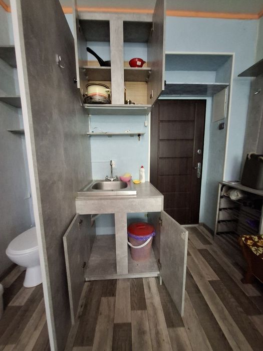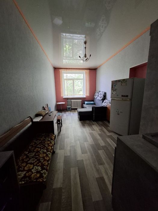 В кімнаті зі свіжим ремонтом, площа якої 15.м2, є холодильник, пральна машина, власний туалет в кімнаті, умивальник, меблі.