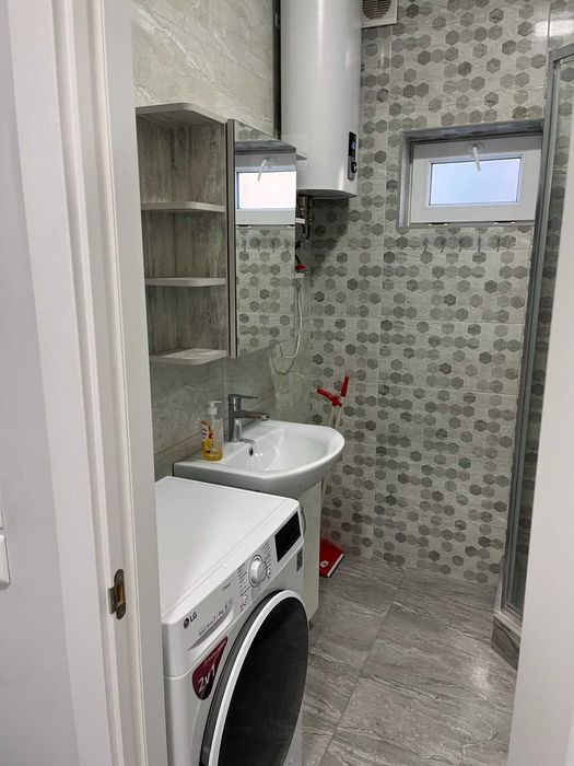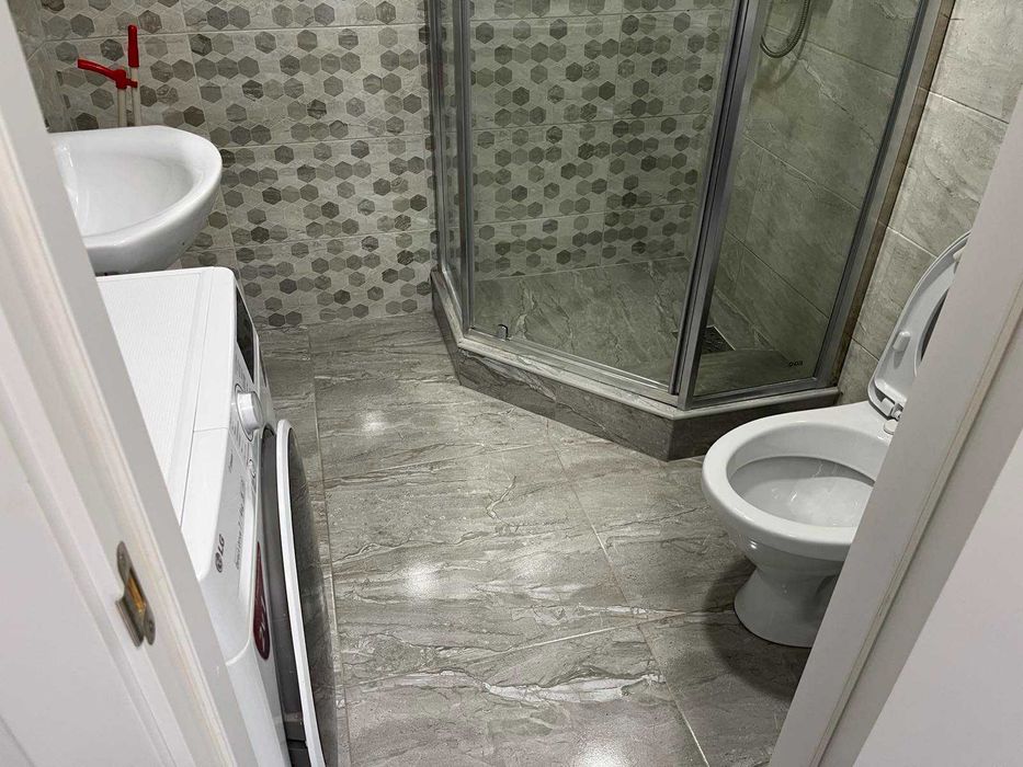 ванна кімната з душем, пральна машина