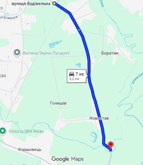 Продаю земельну ділянку з жилим будинком в с Новостав Боратинської ОТГ; Продаю гарне місце під забудову в с. Новостав Боратинської ОТГ. Складається з двох суміжних ділянок загальною площею 41,16 сотих, ширина 43м. довжина 96м. Приватизовані, цільове призначення обидвох ділянок "для будівництва і обслуговування житлового будинку...". Всі документи в наявності. Кадастрові номери 0722880700:03:001:2203 та 0722880700:03:001:2204. На одній з ділянок розміщений житловий будинок з господарчими будівлями. Опалення газове. Дуже зручне та затишне місце для будівництва та проживання на березі річки Чорногузки. Відстань від ТЦ Баобаб 6 км, 7 хвилин на машині. До будинку асфальтована дорога. Вказана ціна за 1 сотку.