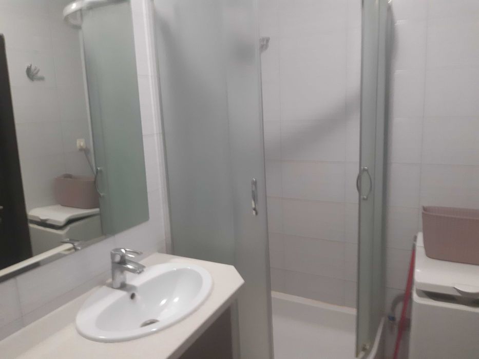 В ванной комнате- душевая кабина, стиралка, бойлер, большое зеркало, и т.д.