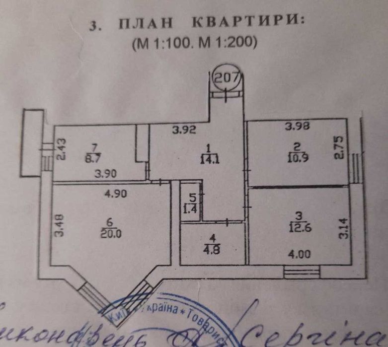 Площа: 72,5 м2(загальна); 43,5 м2(житлова), тамбір, тристороння.
