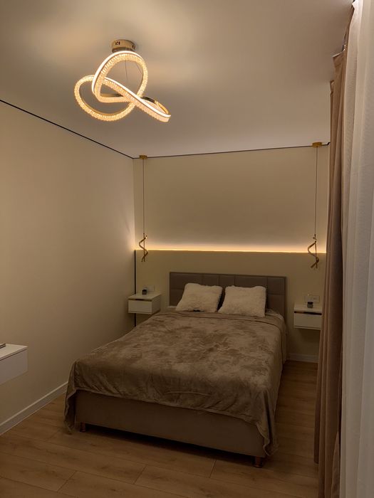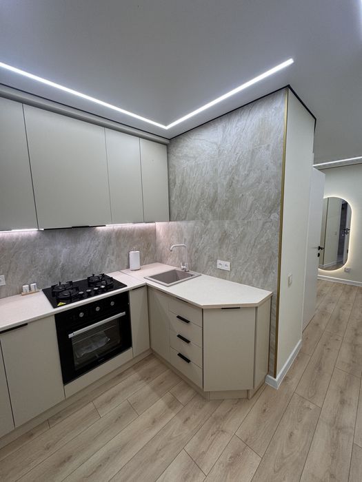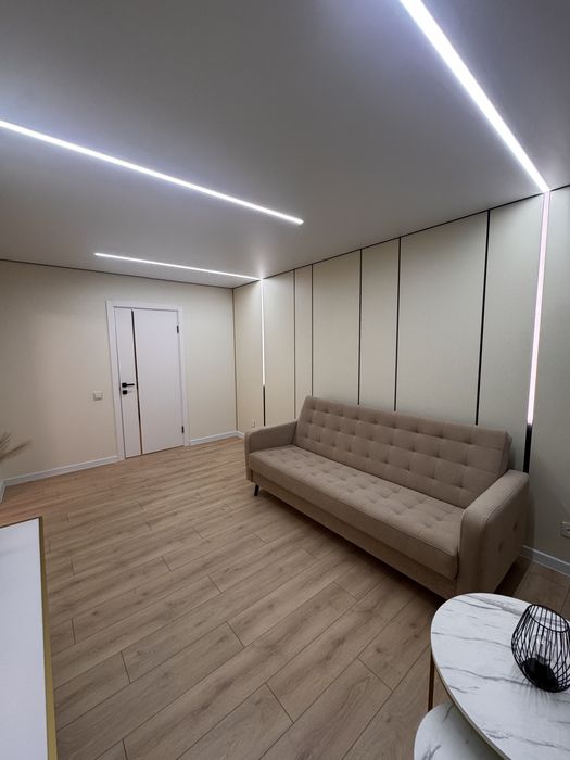 Дизайнерський ремонт преміум-класу з сучасним багатофункціональним освітленням і стильними акцентами.