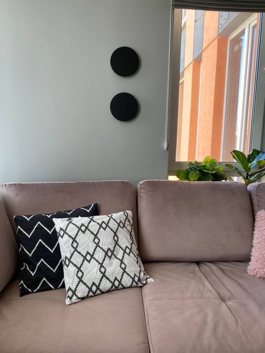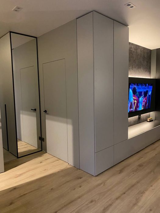 Великий ортопедичний диван для сну і відпочинку (розкладається на весь вільний простір як у домашньому кінотеатрі) і великий телевізор смарт hd, приховані полиці, стіна з декоративною штукатуркою і підсвіткою, окремі італійські світильники біля дивану для читання перед сном :)).