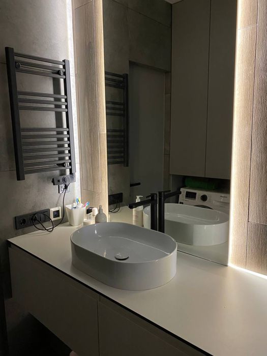 У квартирі зроблений дизайнерський ремонт (дизайнер виграв у конкурсі з цим проєктом), квартира практична і безмежно стильна, все продумано до дрібниць. Практично у всій квартирі тепла підлога з підігрівом. Меблі всі робилися на замовлення з преміум-матеріалів. 3 телевізори, 2 кондиціонери, різні сценарії освітлення.