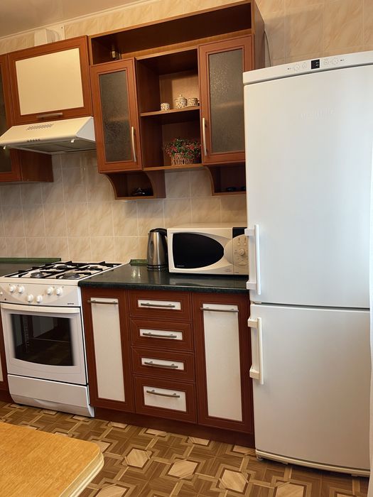 В квартире новый ремонт, паркет, хорошая мебель ,техника( бойлер, 2 TV, холодильник , микроволновая печь ,электрочайник, стиральная машина, пылесос)+ все необходимое для жизни.