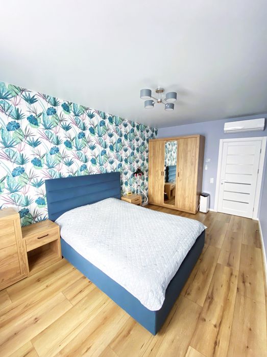 Велика спальня, невелика кімната (підійде під дитячу або кабінет) та простора кухня-студія.