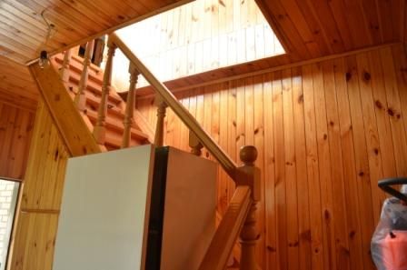 Веранда и мезонин -вагонка,лак. Лестница на второй этаж -дерево, массив. Жилая площадь дома 67 кв.м.