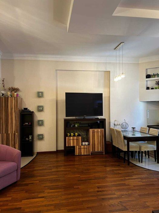 Переваги планування: простора кухня-студія, велика ванна з вікном, гардеробна, окрема затишна спальня.