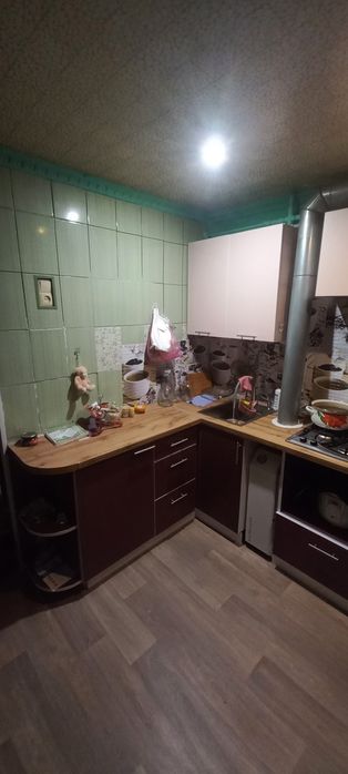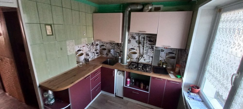 Вікна- м/ пластик, с/вузол і кухня- кахель. С/ техніка замінена, в гарному стані. Кухня зроблена на замовлення залишається. Бойлер 80л.