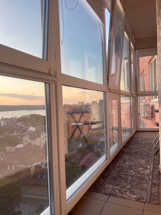 Квартира розташована на 10 поверсі, звідки відкривається панорамний краєвид на озеро та неймовірні заходи сонця.