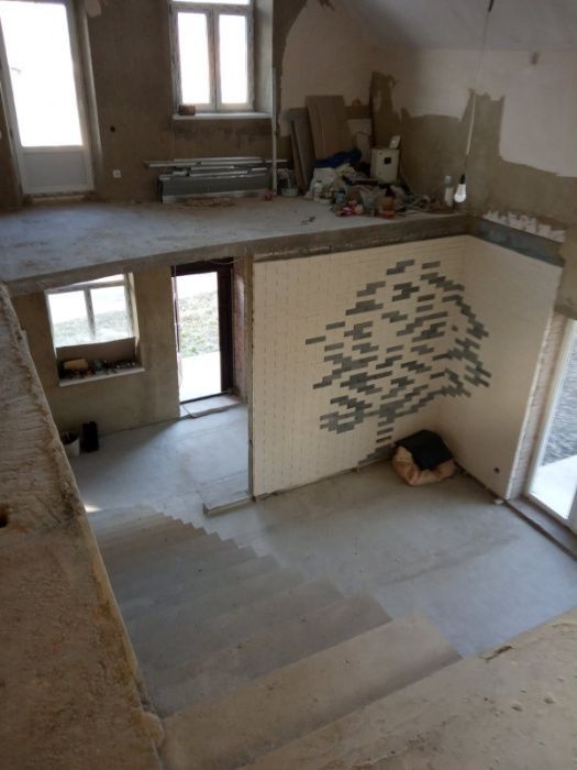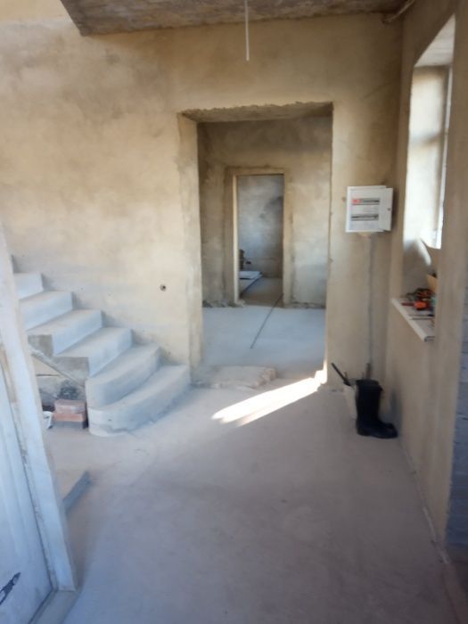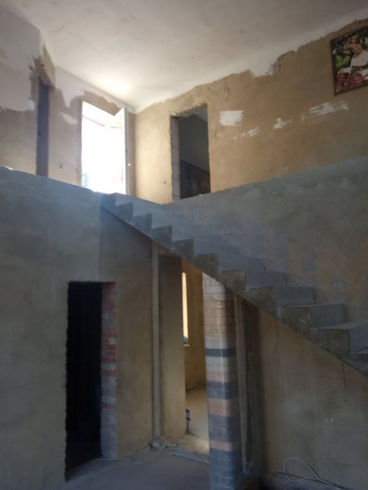 Будинок цілком готовий до виконання внутрішнього оздоблення, стіни-штукатурка, підлога-стяжка, зроблений комин для каміну, електрика-проведена та підключена, комунікації розведені. Встановлені дорогі двері та вікна, є в наявності вся сантехніка, батареї та твердопаливний котел.