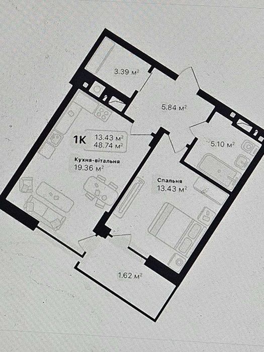 Загальна площа 48.74 м