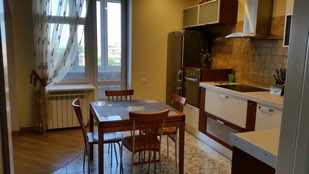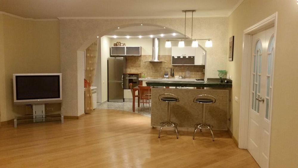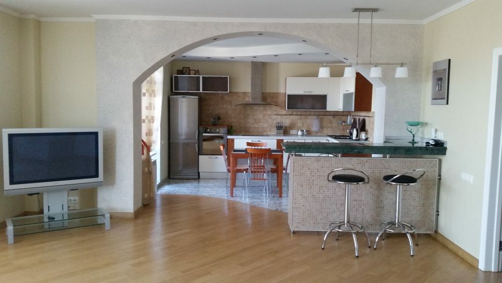 Квартира розташована на 9 поверсі, загальна площа-120кв.м., кімнати роздільні: велика кухня студія, спальня , дитяча кімната, 2 санвузла, 2 остіклені лоджі. Побутова техніка, меблі, кондиціонери у всіх кімнатах, бойлер. Квартира дуже тепла, світла, затишна,