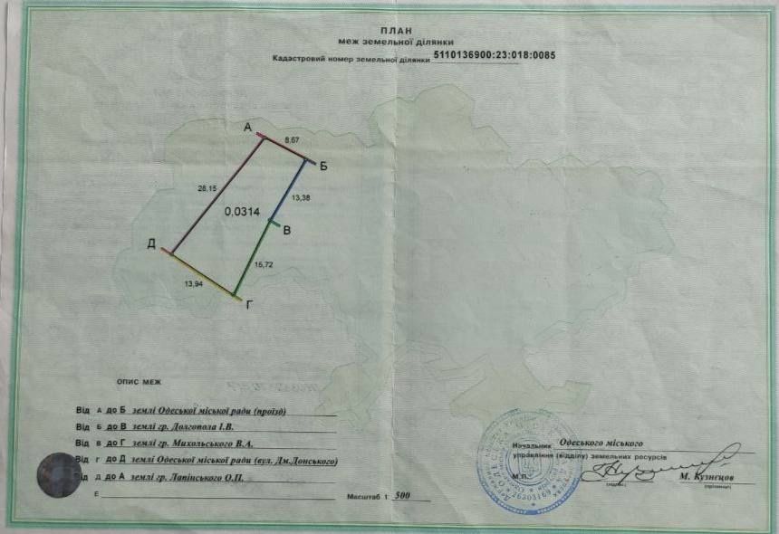 Приморський; Земельна ділянка район Чубаївської/Д.Донського; Продається приватизована земельна ділянка(від власника),комунікації(вода,електроенергія)