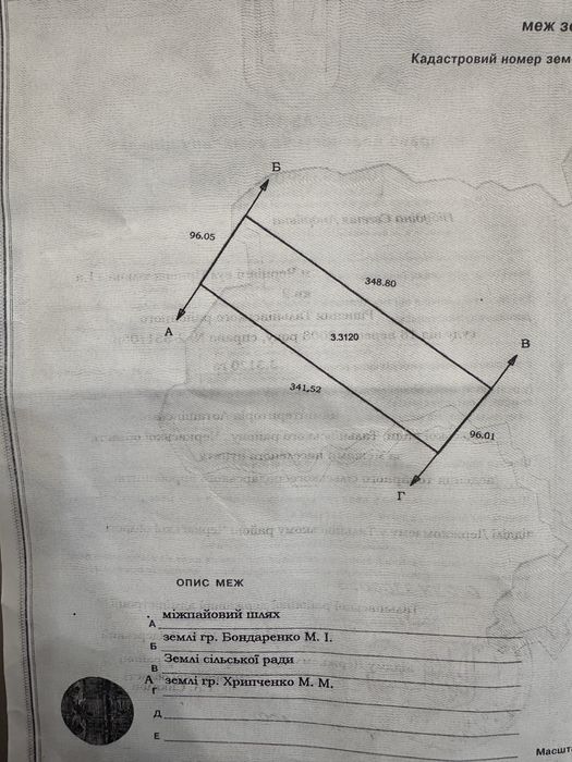 Земельна ділянка 3.3 га (пай); Продам земельний пай, приватизований