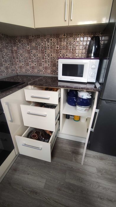 В квартире есть вся необходимая бытовая техника, посуда, подушки, одеяла