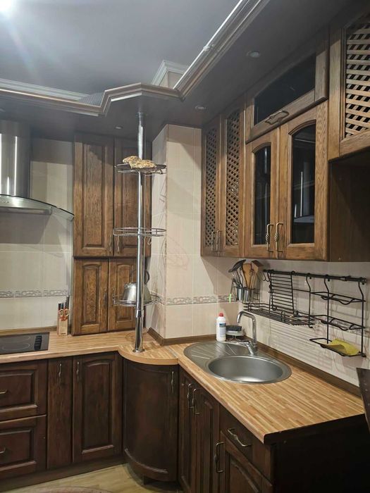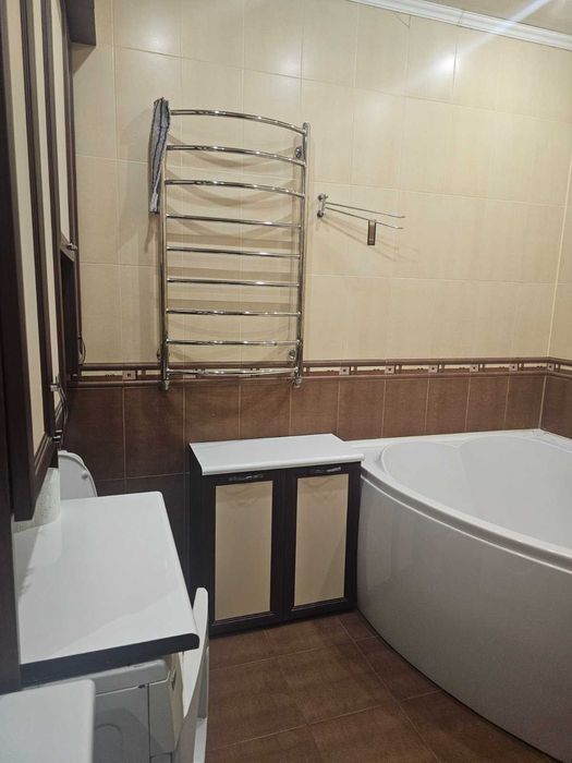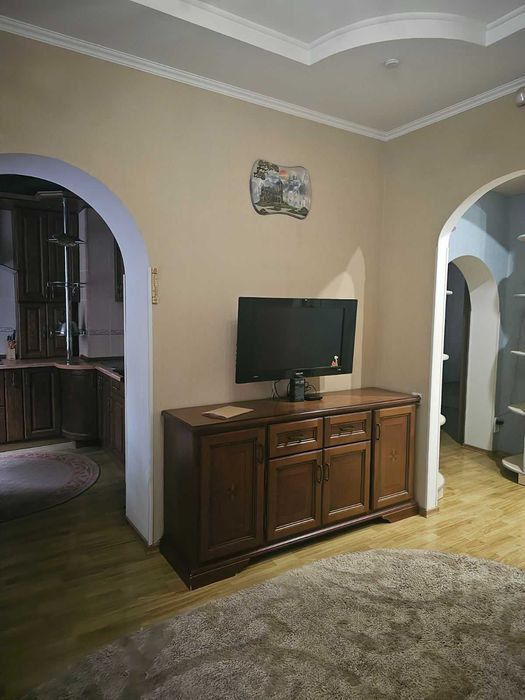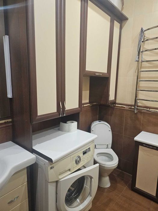 Повністю укомплектована меблями та побутовою технікою: холодильник, мікрохвильова піч, пральна машина, кондиціонер, телевізор, духова шафа, Wi-Fi.