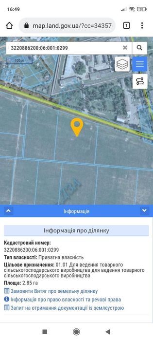 Земельний пай Київська область Бориспільський район; Земля 2,85 га с/г призначення,приватна власність.Поруч газ,світло,вода.Село через дорогу(10 метрів),промзона.За додатковою інформацією телефонуйте за номером у вайбері або телеграмі