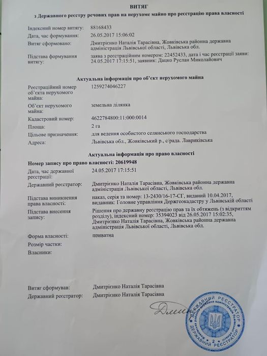 | Земельна ділянка: |