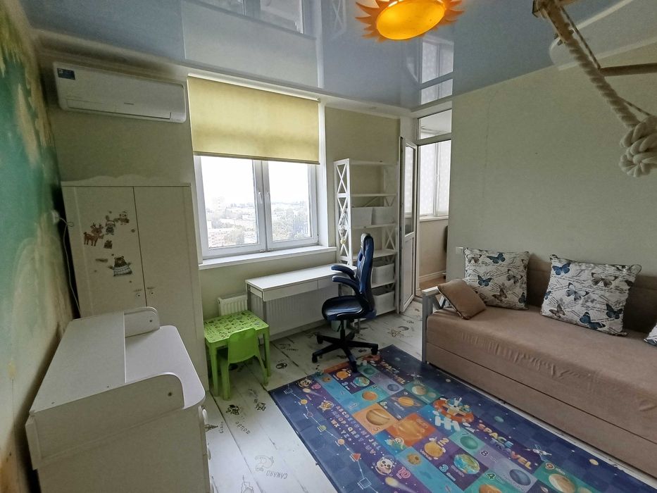 Простора кухня- вітальна студіо 30 м. кв. + три окремі кімнати: спальня з великою вбудованою шафою купе та окремою невеликою гардеробною, дитяча, гостьова кімната/кабінет,коридор, два повноцінні санвузли, та невелика лоджія.