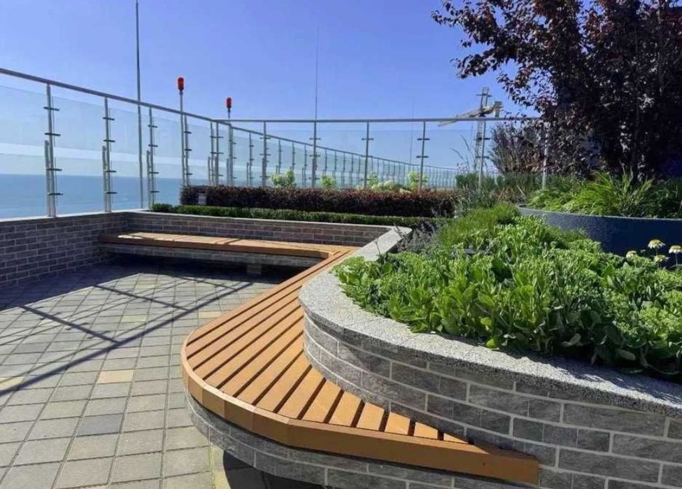 На крыше дома расположена смотровая площадка и сад с видом на море и всю Одессу.