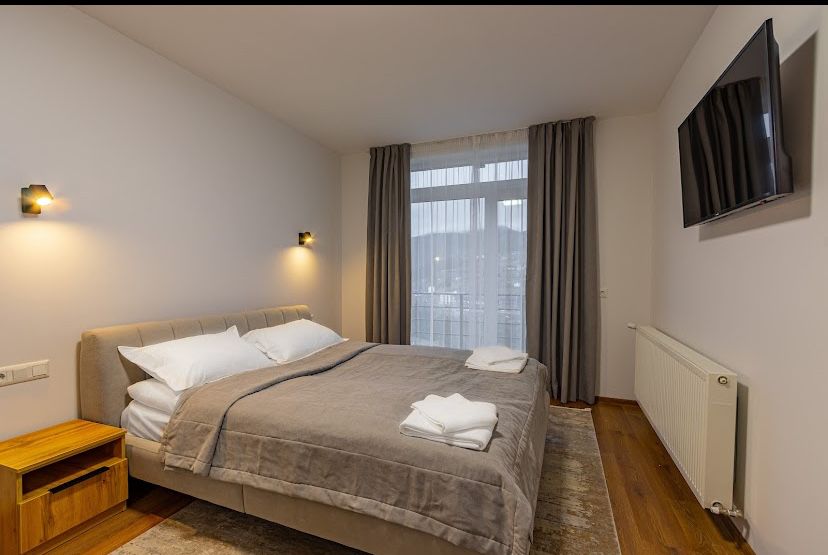 Апартаменти в готелі; Продається смарт квартира в Буковелі . Апарт готель (Garda ). В букінгу можна знайти його, знаходиться в управлінні кампанією проте можна розірвати договір в любий момент та проживати в апартаментах самостійно так як це квартира яка буде у вашій власності.