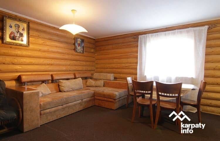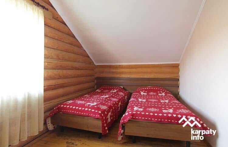 Може проживати до 6 людей в одних апартаментах котеджу ( два поверхи, дві спальні, вітальня з кухнею)