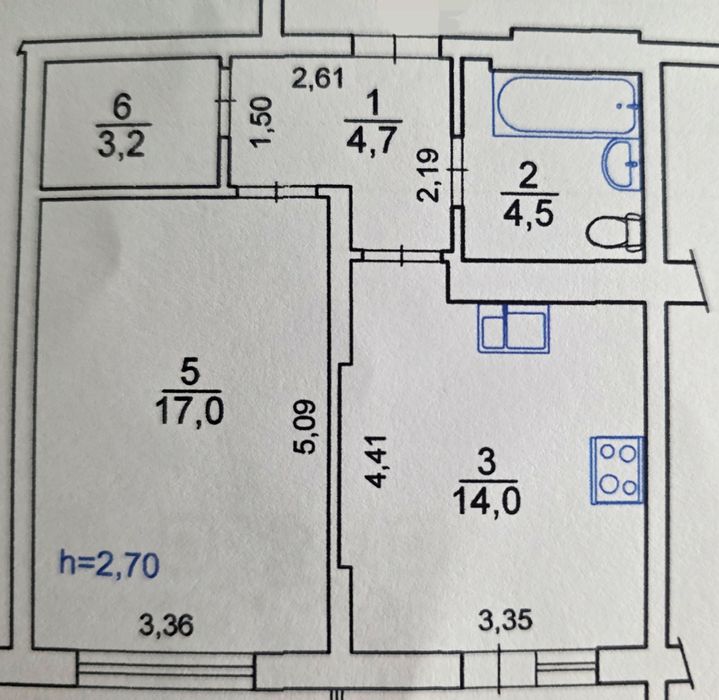 Висота стелі 2, 7 м;