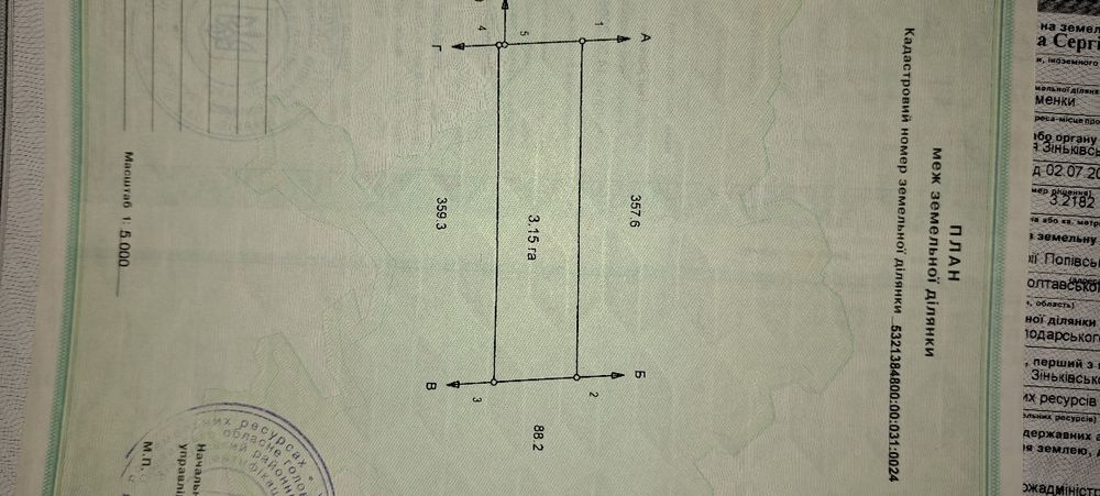 Продам Пай 6,37 га. Полтавська область, Зіньківський район.; Продам 2 земельні ділянки (паї) 3,15 га та 3,22 га, що розташовані поряд один з одним. Паї розташовані на території Опішнянської т.г. Ділянки розташовані поруч з трасою Опішня- Зіньків. В оренді до кінця 2029 р. Орендна плата виплачується вчасно. Кадастрові номери :