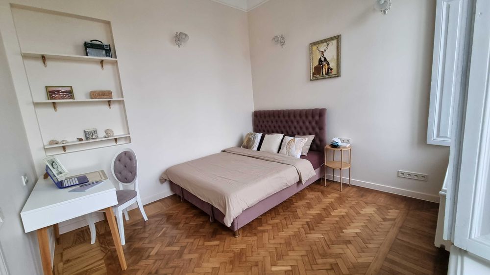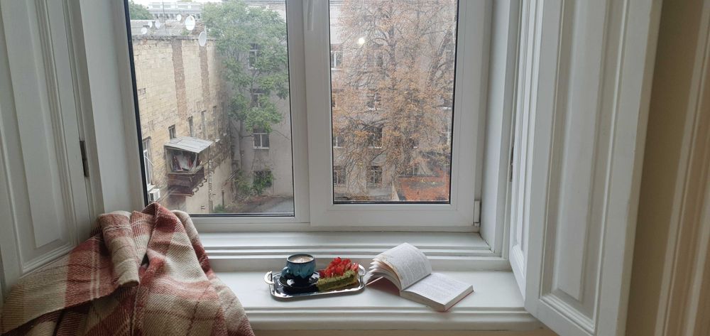 Квартира з високою стелею, великими вікнами та дуже світла.