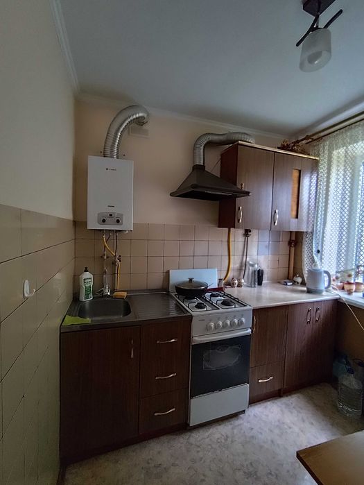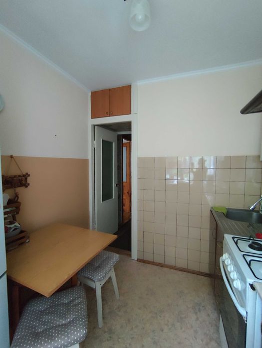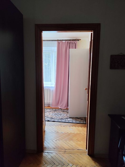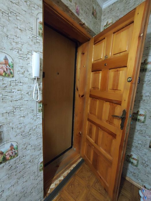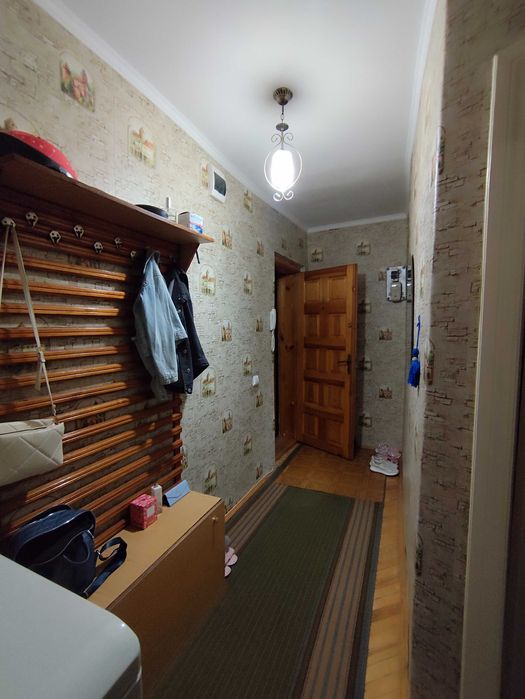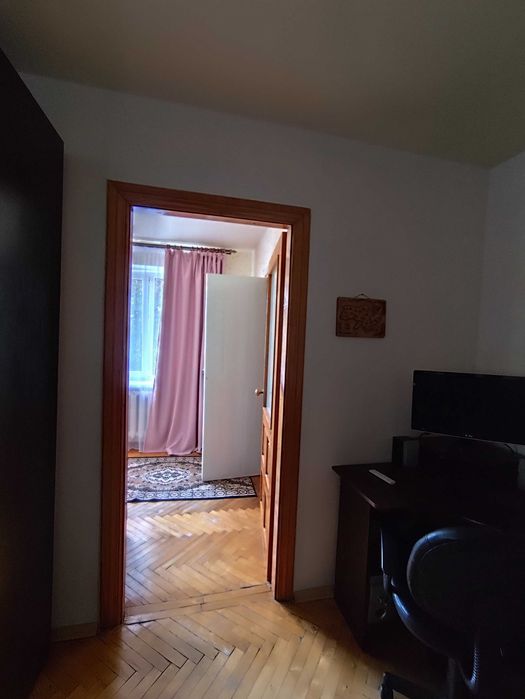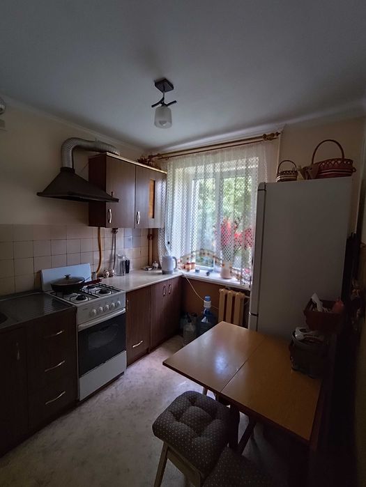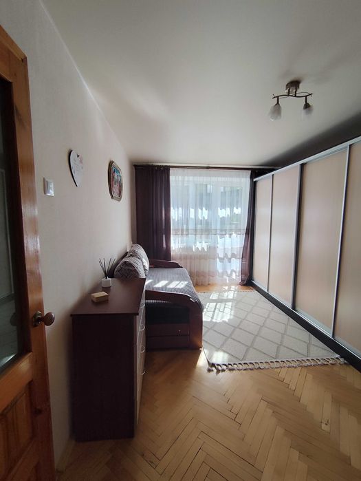 Кухонні меблі залишаються. Пластикові вікна чудової якості. Засклений балкон і кладовка в кімнаті. Одна кімната прохідна, друга кутова. Покриття підлоги - паркет. В кладовці дерев'яні полиці чудової якості.