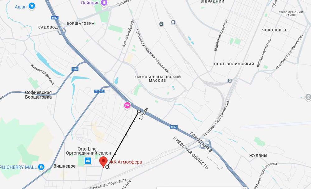 Зручна транспортна розв"язка, біля будинку зупинка маршруток на Київ і по Вишневому, також недалеко залізничний вокзал.
