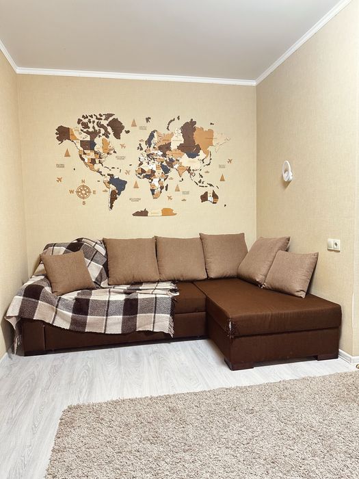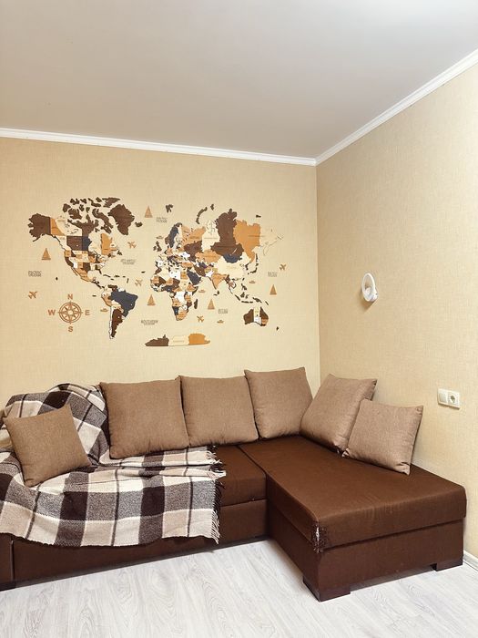 Меблі та техніка залишаються новим власникам. Деревʼяна карта світу також як приємний бонус.