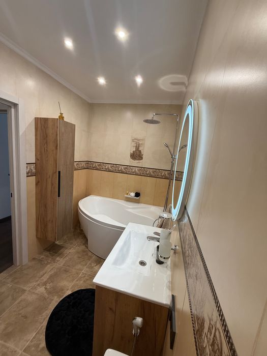 Квартира повністю укомплектована меблями та технікою провідних світових брендів. Є всі необхідні меблі та техніка: посудомийна машина, сушильна машина, холодильник, варильна панель, духова шафа - мікрохвильова піч,плита, пральна та сушильна машина, телевізор, лічильник на опалення та водопостачання ( що дуже заощаджує ваш бюджет при сплаті комунальних платежів )