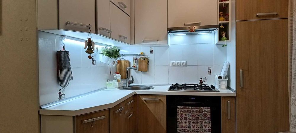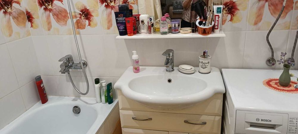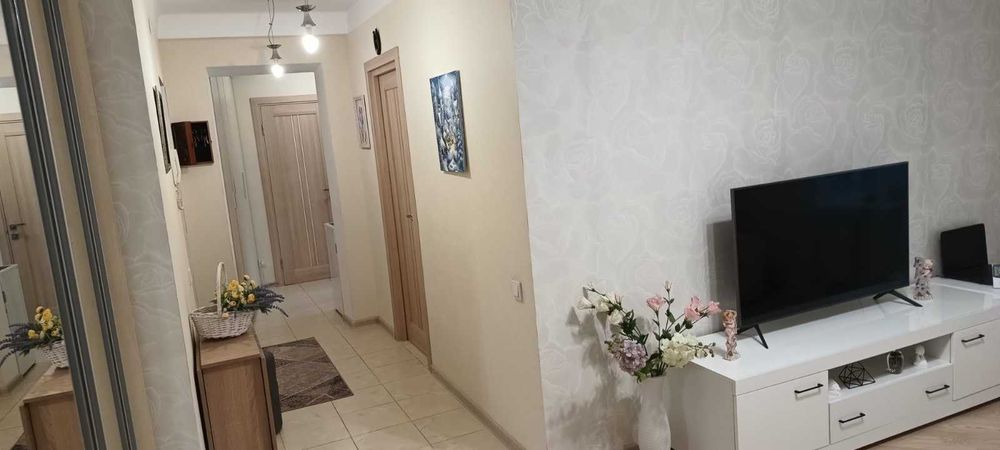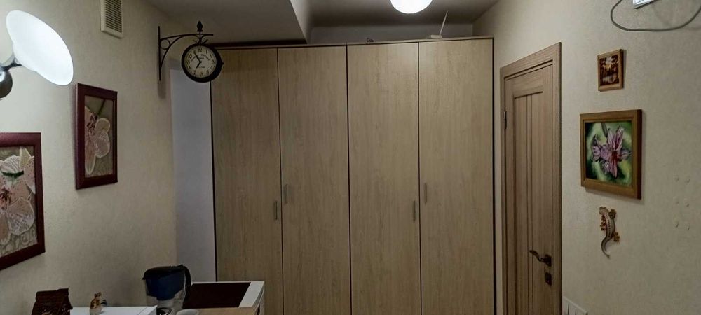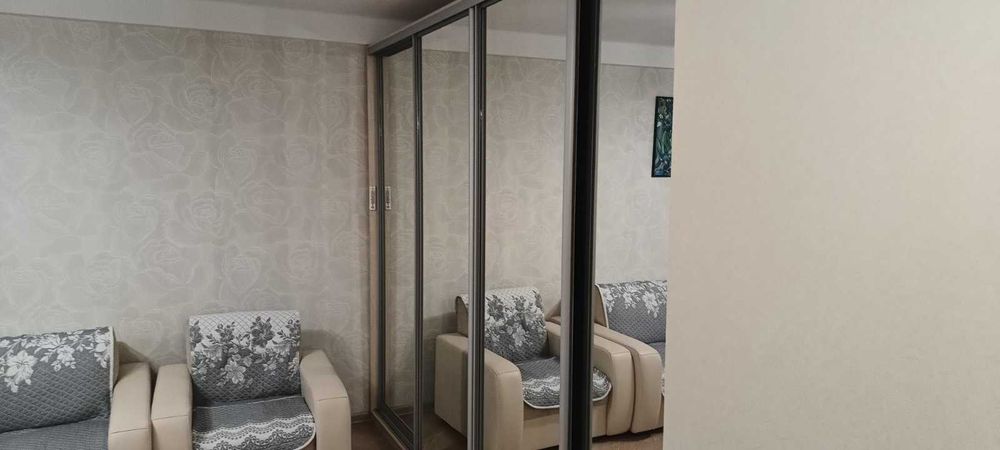 подогрев пола.Стены обои.Санузел стены-плитка.Меблі та битова техніка залишаються.